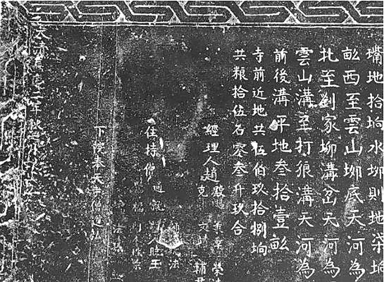 2010年,筆者去后莊慈云寺抄碑文,在清咸豐六年(1856)七月勒石的《補(bǔ)修慈云寺并建瘟神廟碑記》中的末尾,明確記載有“下院奉天寺”的字樣。2023年4月1日,筆者和張君再次來到慈云寺,在嘉慶二年(1797)七月勒石的《慈云寺地畝數(shù)目石刻》中的末尾,又有“下院奉天寺僧道弘”的記載。再一次證明前青塘奉天寺是慈云寺的下院,它是臨縣“十三官寺九下院”中的其中一院。