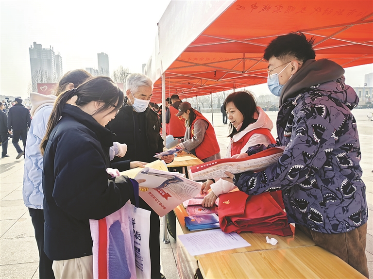 圖為汾陽(yáng)市總工會(huì)向群眾發(fā)放文明手冊(cè),倡導(dǎo)文明規(guī)范理念。
