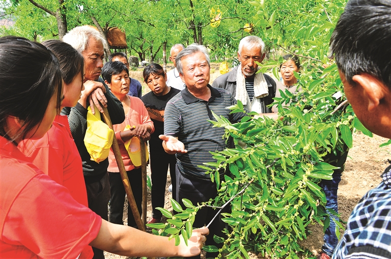 圖為張德志生前為棗農(nóng)們講授棗樹修剪技術(shù)。
