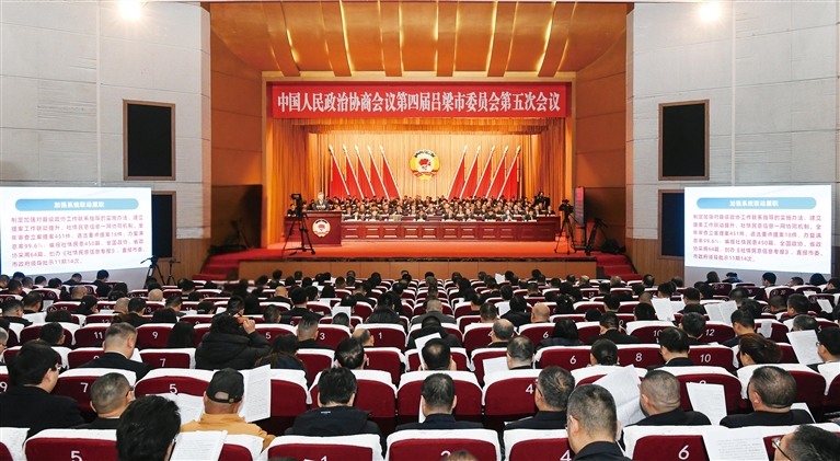 呂梁影劇院會(huì)場(chǎng),氣氛莊重?zé)崃?。主席臺(tái)帷幕正中,中國人民政治協(xié)商會(huì)議會(huì)徽光彩熠熠,分列兩側(cè)的十面紅旗鮮艷奪目。會(huì)場(chǎng)內(nèi)懸掛著“堅(jiān)持以習(xí)近平新時(shí)代中國特色社會(huì)主義思想為指導(dǎo),為建設(shè)美麗幸福呂梁凝聚人心、匯聚力量!”的橫幅。