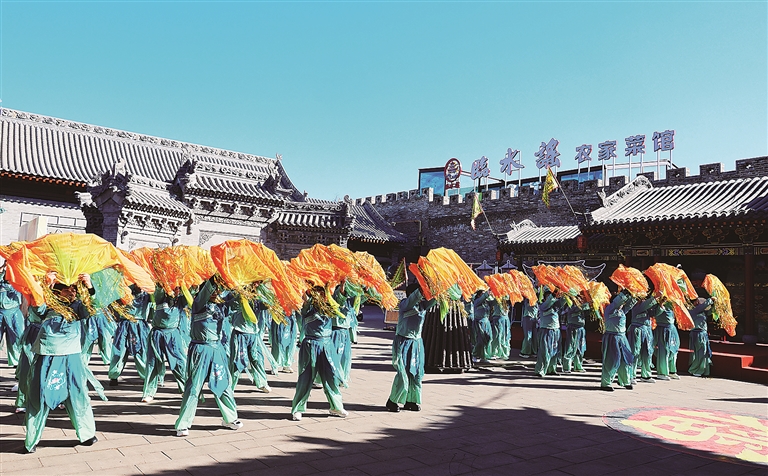 圖④: 三皇廟景區(qū)秧歌表演 王 偉 攝