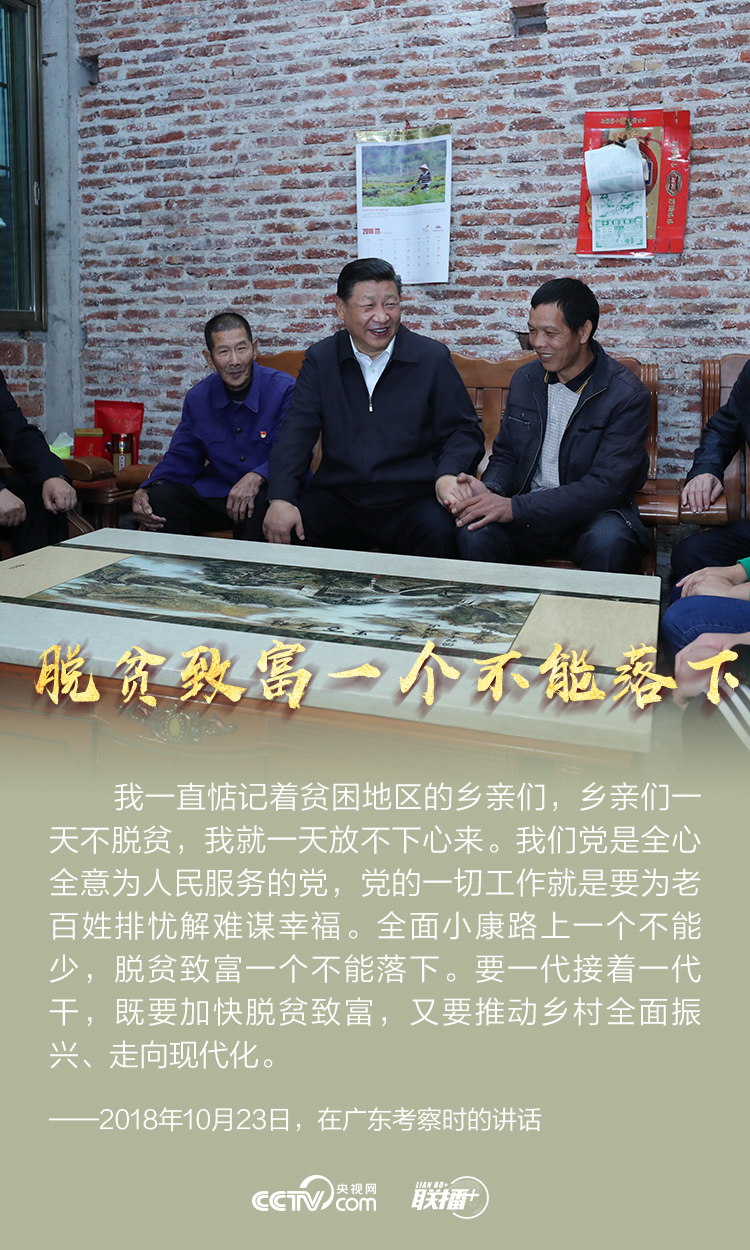 從強(qiáng)調(diào)“小康不小康,關(guān)鍵看老鄉(xiāng)”,到提出精準(zhǔn)扶貧、精準(zhǔn)脫貧基本方略,從加大東西部扶貧協(xié)作和對口支援力度,到謀劃攻克深度貧困堡壘……為了兌現(xiàn)這個承諾,黨的十八大以來,習(xí)近平總書記親自掛帥出征,走遍全國集中連片特困地區(qū),多次召開專題座談會,分析形勢任務(wù)、作出工作部署,為的就是讓全體人民一個不少都能過上全面小康生活。